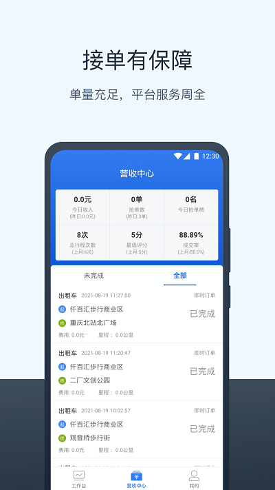 3、订单接单数据汇总统计,实时更新接单数量和完成情况,帮助司机分析运营效率;
