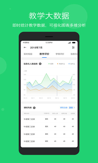 该软件采用智能化管理模式,可实时监控辖区内所有学校的教学活动。系统会自动采集课堂教学、作业批改、考试测评等关键数据,并通过可视化图表展示分析结果。管理者可以快速了解各校的教学进度和质量,及时发现并解决教学过程中的问题。平台还提供智能预警功能,当某项教学指标出现异常时会自动提醒,帮助管理者实现精准干预。
