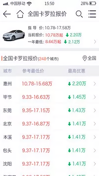 智能比价系统:支持周边城市及全国370个城市的实时报价对比,帮助用户找到最优购车方案