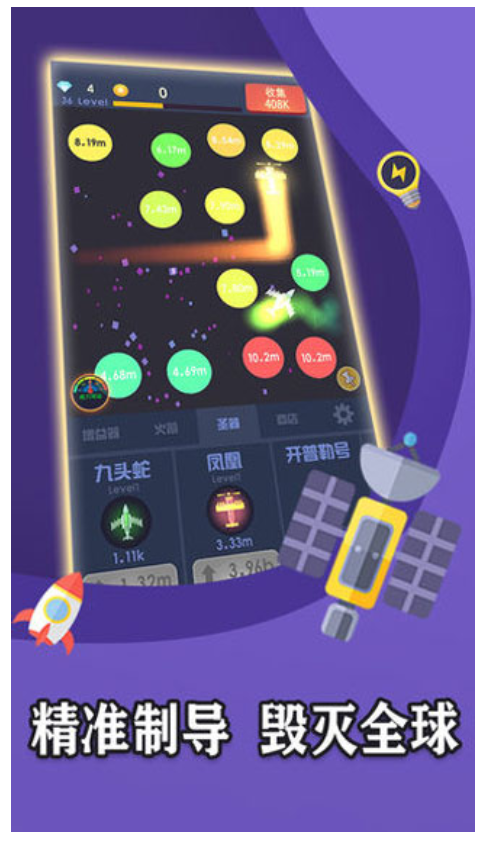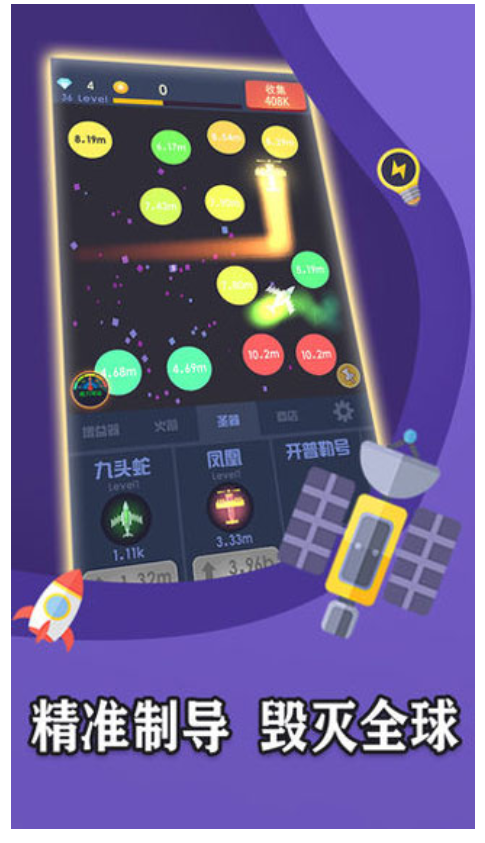 游戏提供大量有趣的道具,可以帮助玩家轻松消除场景中的星球,让战斗更加轻松愉快。