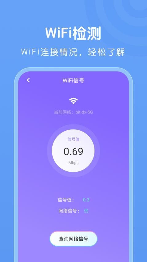 支持对当前连接的WIFI进行实时网速测试,帮助用户了解网络的稳定性和速度表现。测试结果直观显示,方便用户随时掌握网络状态。
