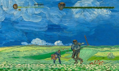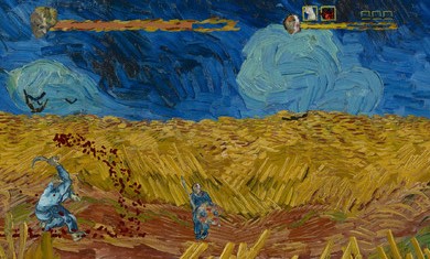 游戏最大的特色是完全基于梵高原作开发,所有场景、角色设计都严格遵循后印象派风格。首领战斗极具创意,比如《麦田群鸦》关卡的乌鸦王会召唤画作中的乌鸦群攻击玩家。击败首领后获得的特殊能力都与画作主题相关,如《星夜》赋予玩家操控星空的能力。游戏提供三种难度选择:休闲模式适合只想欣赏艺术的玩家,普通模式平衡了挑战与乐趣,困难模式则考验玩家的操作极限。此外,游戏还设有艺术画廊模式,收录了所有出现的梵高作品高清版本及详细解说。