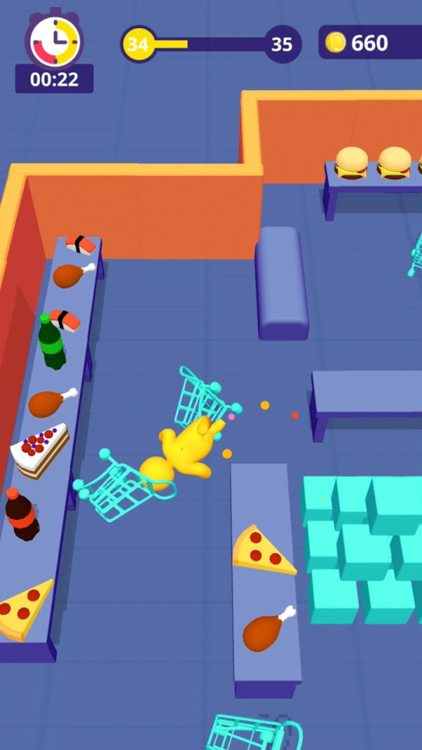 《开吃吧汉子》是一款以美食冒险为主题的休闲游戏,玩家需要在厨房场景中四处寻找食物。随着进食量的增加,角色的胃部会越来越大,体型也会随之膨胀。游戏加入了多人竞技元素,玩家需要与其他橡胶人角色争夺食物资源。场景中还设置了各种致命陷阱和障碍物,玩家需要小心避开。游戏最大的乐趣在于观察场上形势的变化,既要主动寻找食物,又要提防被其他更大的对手吞噬。这种紧张刺激的竞争氛围让游戏充满挑战性。