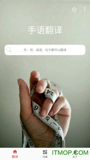 手语是一种表达你自己的优雅方式,把聋人和听人带到一起来,可以使你的胳膊和手指优美,可以让你用独特的方式向喜欢的人表达心意。软件把语言翻译成手语图文,并有手语词典。