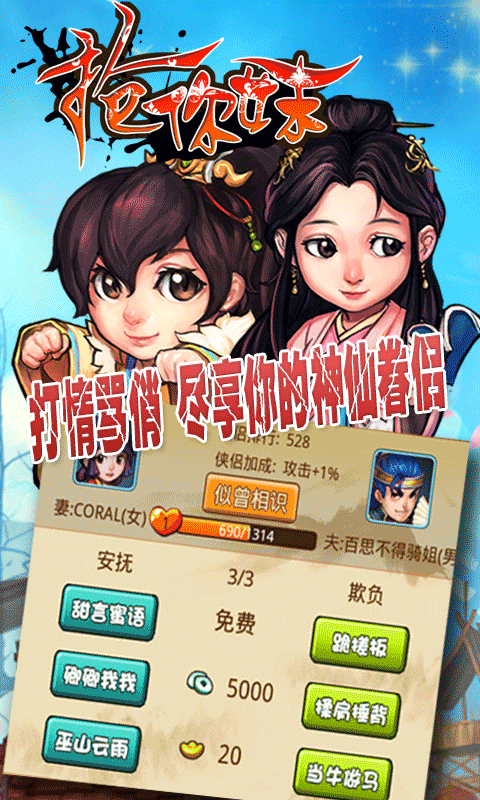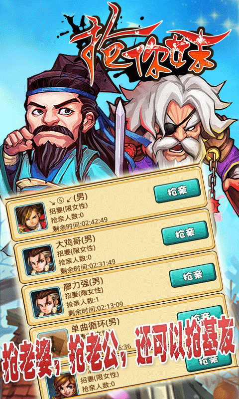 现在就加入《抢你妹》,开启你的江湖之旅吧!在这个激情燃烧的武侠世界中,书写属于你自己的传奇故事,结识志同道合的伙伴,收获真挚的感情。记住,在这个世界里,一切皆有可能!