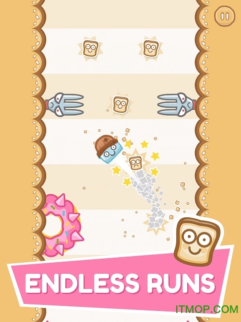 在游戏中你将化身为一台活力四射的烤面包机,通过精准的弹跳来收集美味的面包片。虽然画风走的是萌系路线,但实际玩起来却意外地上头。每通过一个关卡后还有升级强化的过程,这种成长系统设计得非常巧妙,让人忍不住想要一直玩下去,这点必须给个大大的赞。