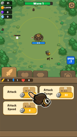 启动游戏后,在主页点击"战斗"按钮即可进入游戏场景。2、当怪物进入炮塔攻击范围时,炮塔会自动发起攻击,击败敌人后会掉落金币奖励。玩家可以利用这些金币在商店中升级炮塔的各项属性,包括攻击力、攻击范围和攻击速度等关键指标。3、游戏贴心地提供了速度调节功能,玩家可以根据自己的节奏调整游戏速度,在右侧的速度控制面板上可以自由选择1倍、2倍等不同速度。4、游戏采用无限挑战模式,只有当防御失败时才会结束当前回合,玩家可以根据表现获得相应的奖励。5、除了常规升级外,玩家还可以在工厂界面中强化炮塔的基础属性,通过长期培养打造出更强大的防御体系。