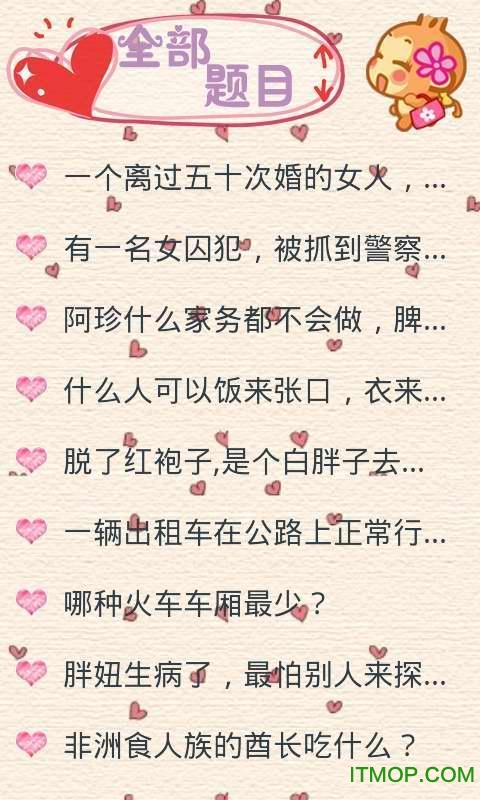 这款游戏不仅能带来欢乐,更能有效调动玩家的大脑思维,帮助你改变思考问题的固有模式。通过不断挑战各种类型的脑筋急转弯,你可以培养出更加灵活多变的思维方式,提升解决问题的能力。游戏界面设计风格可爱,操作简单直观,无论是老人还是孩子都能轻松上手,真正做到了老少皆宜。