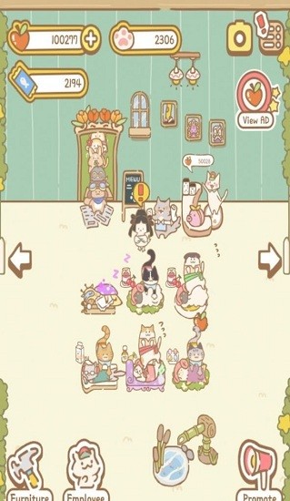 游戏操作简单易上手,各种猫咪都能在这里获得完美的放松体验。新手玩家会获得丰厚的新手奖励,帮助轻松度过创业初期。作为老板,你需要招募优秀的服务员团队,为客人提供更多创新服务。整体游戏节奏轻松愉快,画面精致可爱,音乐舒缓治愈,是一款适合全年龄段玩家的休闲佳作。