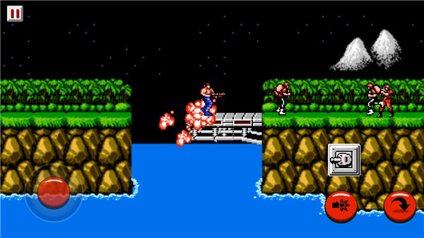 游戏完美复刻了FC原版的所有内容,从关卡设计到角色动作都原汁原味地呈现。开发者特别注重保留游戏的核心玩法,包括标志性的双人合作模式、丰富的武器系统和极具挑战性的关卡设计。同时,游戏画面经过高清重制,告别了原版马赛克画质,角色建模和场景细节都更加精致,让经典焕发新生。操作方面则针对触屏设备进行了优化,虚拟按键布局合理,手感流畅,即便是新手也能快速上手。