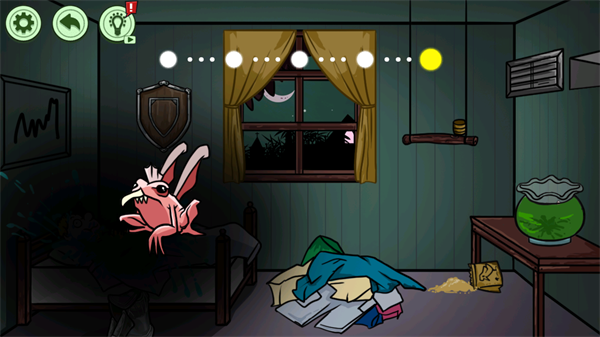 游戏内的商城提供了多种个性化选项,玩家可以购买全新的虫子皮肤来装扮自己的角色。选择喜欢的游戏模式后,点击开始即可进入关卡。例如,第一关的场景设定在一个孩子熟睡的卧室,你需要巧妙利用环境完成任务。