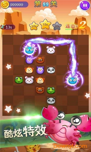 游戏采用动态评分系统,消除速度越快得分倍率越高。每关设有三星评价标准,完美通关需要玩家在时间和步数上都达到最优表现。高分玩家将获得稀有道具和装饰奖励。