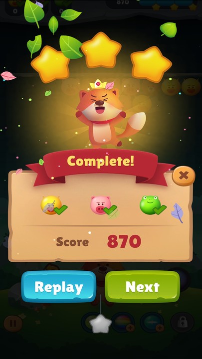1.多关卡设计:游戏包含超过500个精心设计的关卡,每个关卡都有独特的泡泡排列和挑战目标。关卡难度呈渐进式提升,从简单的基础教学到需要精密计算的复杂挑战应有尽有。丰富的关卡内容确保了玩家能够获得持久的游戏乐趣,不会轻易感到厌倦。