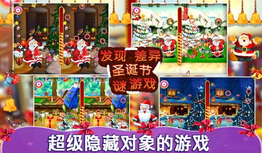 这款游戏将带你进入一个充满圣诞魔法的世界,在这里每个细节都可能暗藏玄机。圣诞老人的帽子颜色是否有所不同?鲁道夫驯鹿标志性的红鼻子去了哪里?那个可爱的结霜雪人为何突然消失?圣诞老人的雪橇上是不是少了一只驯鹿?游戏精心设计了数十个充满节日气息的场景,通过生动有趣的画面和音效,为所有年龄段的玩家带来欢乐。特别是小朋友们,可以在游戏中培养观察能力,同时感受浓浓的圣诞氛围。