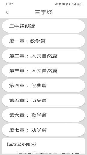 7.提供丰富的拓展学习资源,包括历史背景介绍、文化典故解析等,帮助用户全面理解《三字经》。