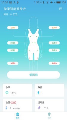 微柔塑美APP通过蓝牙连接硬件,通过柔性传感器采集束身衣各处压力值进行压力检测分析,