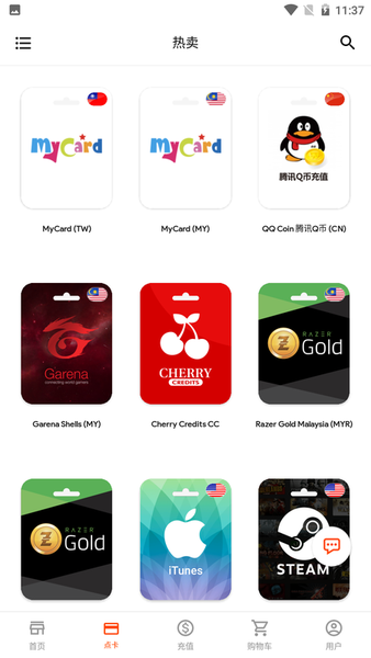 包含游戏充值,游戏卡,礼品卡,移动充值等全方位服务。除了常规的游戏点券充值外,我们还提供Steam、PSN、Xbox等平台的礼品卡,以及话费充值等生活服务,真正实现一站式数字娱乐消费平台。