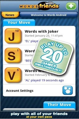 社交游戏巨头Zynga旗下爆款填字游戏WordsWithFriends现已登陆Android平台!这款风靡iOS的休闲益智游戏累计用户突破500万,月收入高达数百万美元,如今安卓用户也能免费体验其魅力。游戏支持最多20人联机对战,并创新性地集成了实时聊天和消息推送功能,让玩家在拼词竞技的同时享受社交互动的乐趣。无论是等车通勤还是居家休闲,都能随时开启一场脑力激荡的单词对决。