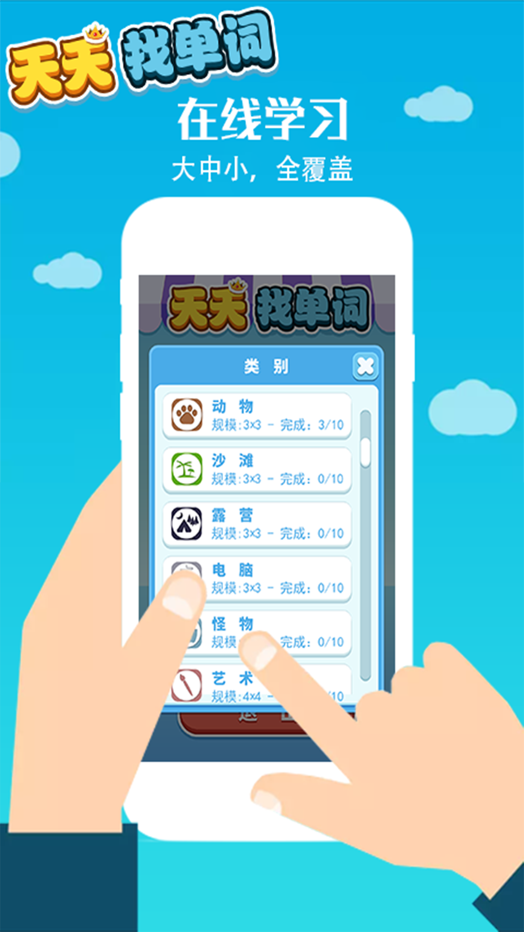 大中小,全覆盖:词库包含从小学到专业级别的10万+词汇,按难度分级。支持用户自主添加生词本,打造个性化词库。