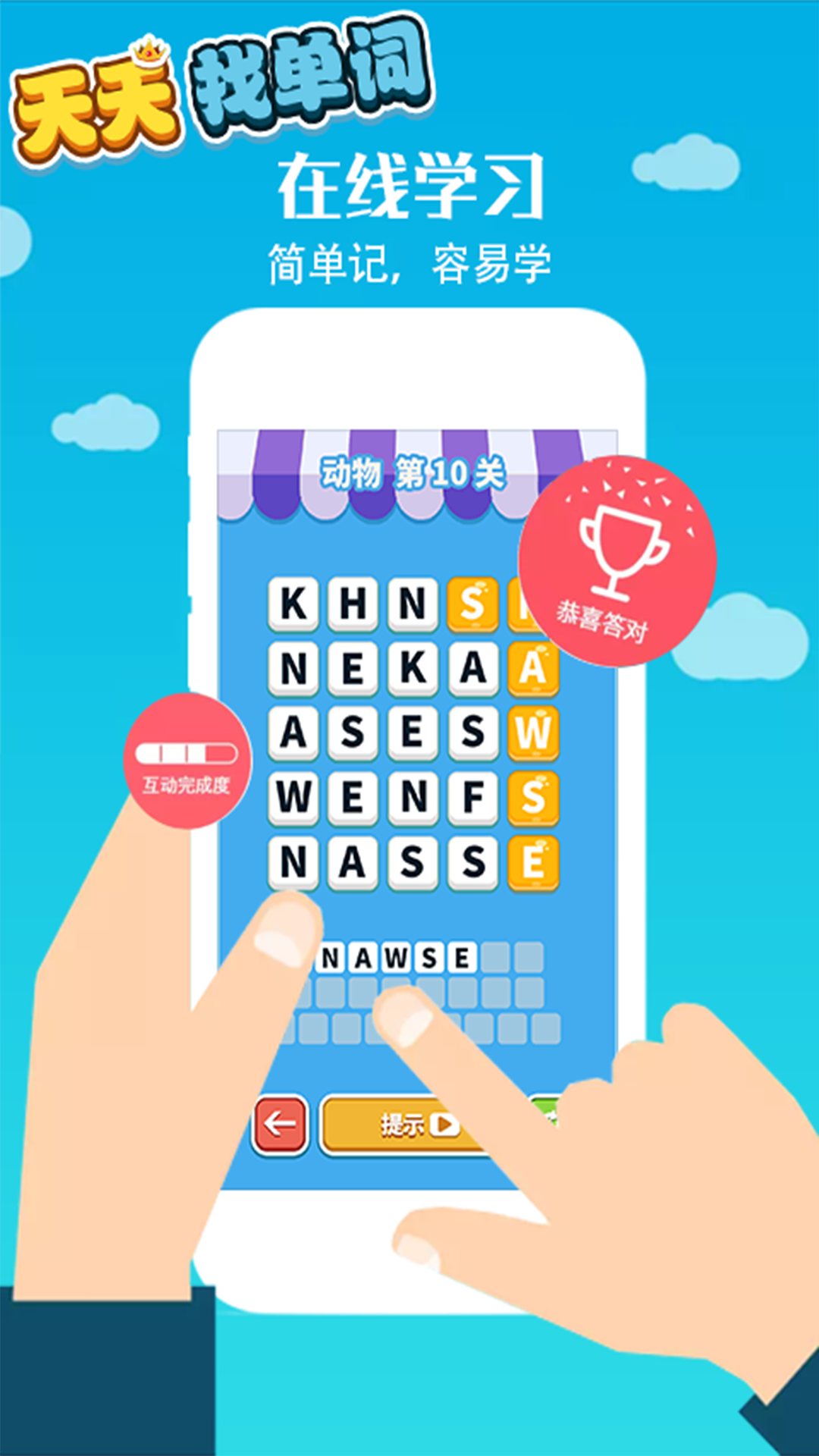 找单词,记单词:创新的单词搜索游戏模式,在趣味互动中加深记忆。每个单词都配有标准发音、词性标注和实用例句,帮助理解运用。