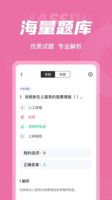 作为母婴保健行业从业者的专业学习伴侣,该软件不仅能够帮助用户顺利通过各类资格考试,更能持续提升专业素养,是职业发展道路上不可或缺的得力助手。无论是备考冲刺还是日常学习,都能提供全方位的支持,让专业知识学习变得更加轻松高效。