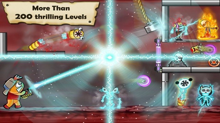 5、独特的弹跳射击机制是游戏的最大亮点,子弹会在场景中反弹,玩家需要掌握物理学原理来精准命中目标,这种创新的玩法带来全新的战斗体验。