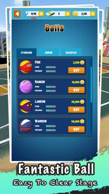 *百变的场景和篮球款式。通过完成关卡获得金币,解锁炫酷篮球。游戏收录了数十种不同风格的篮球皮肤,从经典皮革球到未来科技感十足的发光篮球应有尽有。场景设计同样丰富多彩,从城市街头到职业球场,从白天到夜晚,每个场景都带来独特的视觉体验。玩家还可以自定义角色外观,打造专属的街头篮球风格。