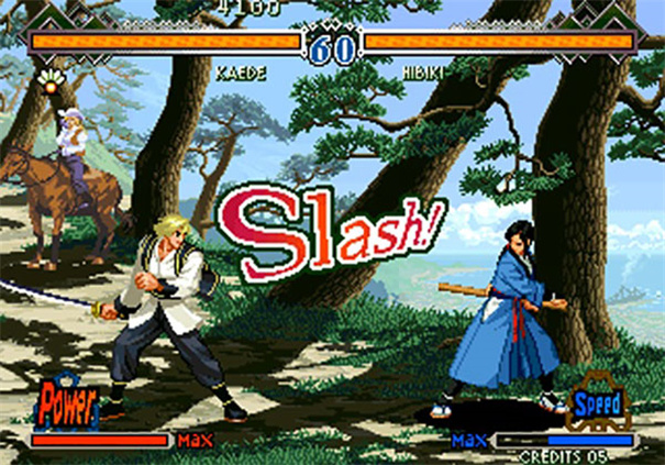 画面表现:游戏画面精美,角色和场景设计充满了东方美学,展现了SNK在2D美术上的深厚功底。即使以今天的标准来看,这些细腻的像素动画依然令人赞叹。