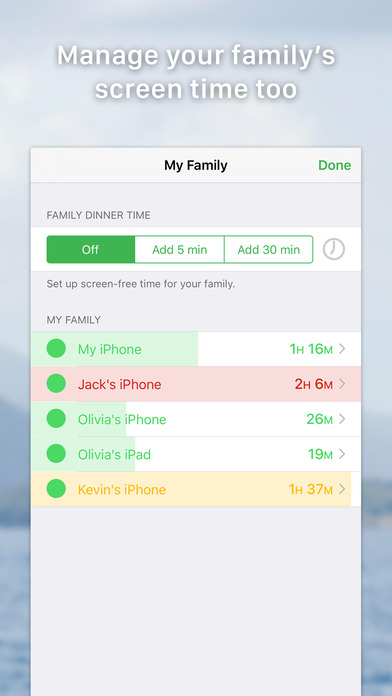 • 自动追踪手机或平板电脑的使用时长,无需手动操作