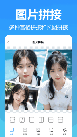 支持竖图拼接、自由拼接、横图拼接等多种拼图模式,满足各类场景需求;
