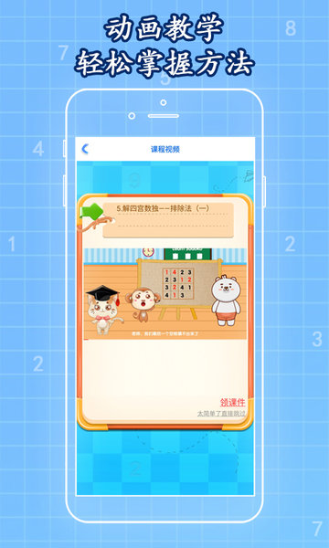 ·动画教学,轻松掌握方法:专业教师团队录制的教学视频,用孩子能听懂的语言讲解数独技巧。