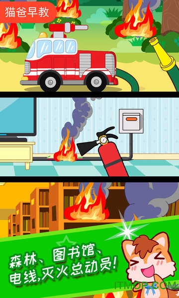 告诉孩子在无法逃生时应该呆在什么地方,如何让消防队员及时找到他腰,怎么用湿毛巾捂住嘴和鼻子。这些知识都通过游戏互动生动呈现。