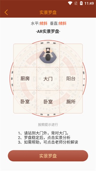 使罗盘箭头正对入户门时,系统会自动记录当前方位数据,并开始计算房屋的风水格局。测量完成后,app会生成详细的风水报告,包括财位、桃花位、健康位等重要方位的分布情况,以及相应的布局建议。用户还可以查看历史测量记录,方便进行对比分析。