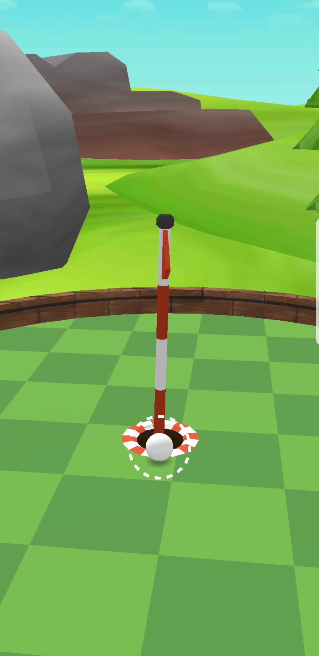 靠近洞口后再来一次将球送进洞中:当球停在洞口附近时,只需轻触屏幕即可完成推杆。这个阶段要特别注意草纹方向,细微的力度差异都会影响进球成功率。
