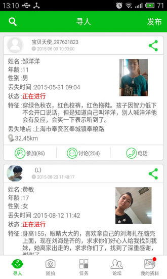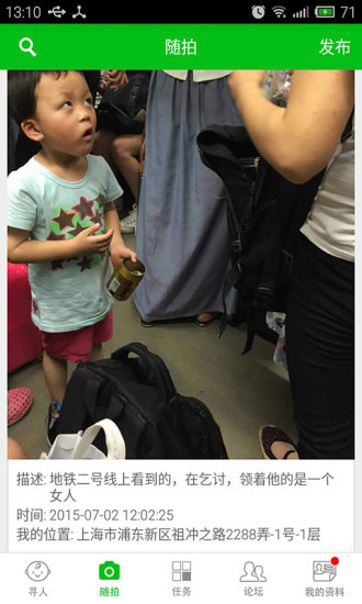 这一创新功能让每个用户都能成为走失儿童的守护者。无论是在路边、地铁站、汽车站还是其他公共场所,只要发现疑似走失或乞讨的儿童,都可以立即拍照上传。平台为每张照片设置了专门的讨论区,方便用户交流信息和提供线索。这种众包式的寻人模式,极大地扩展了寻人网络的覆盖范围。