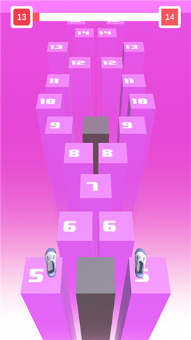 游戏的核心玩法要求玩家必须让鞋子踩到楼顶上的数字,无论数字大小如何。随着关卡级别的提升,楼房的排列方式会变得更加复杂,跳跃难度也会相应增加。只要玩家能够精准控制鞋子稳稳落在楼顶上,游戏就会持续进行,这种设定既考验玩家的反应能力,又增加了游戏的耐玩度。