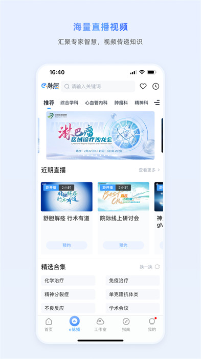 e讲堂汇集了国内外知名专家的视频课程和直播讲座,内容涵盖诊疗规范、手术技巧、病例解析等。用户可在线提问并获得专家解答,实现与顶尖学者的零距离互动。
