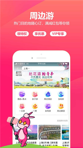 景点门票:提供国内外热门景点门票预订,支持电子票和纸质票。部分景点还提供快速通道票务服务,节省排队时间。