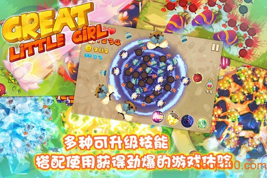 这款游戏在画面上颇具日韩风格,清新靓丽的色彩、美轮美奂的森林、调皮搞笑的萌物,当然还有可爱无比的萝莉妹子,无处不带给玩家们视觉上的欢乐感。本作采用2d俯视视角进行战斗,玩家只能很悲催的看到萝莉妹子的头顶而已,看着她拿着自己手中的武器无奈的轰击扑上来的小怪物,那充满小激情的场面将会带玩家们进入热情高昂战斗过程。游戏音效也十分出色,每个动作和技能都有对应的音效,增强了游戏的沉浸感。