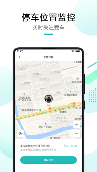 【车辆位置】可以查看车辆的位置信息和停车照片。系统会自动记录停车时的周边环境照片,帮助用户在陌生停车场快速找回爱车。