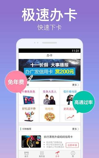 系统性能优化,提升应用运行流畅度;修复了一些已知错误,增强系统稳定性;新增部分银行信用卡产品,丰富用户选择。