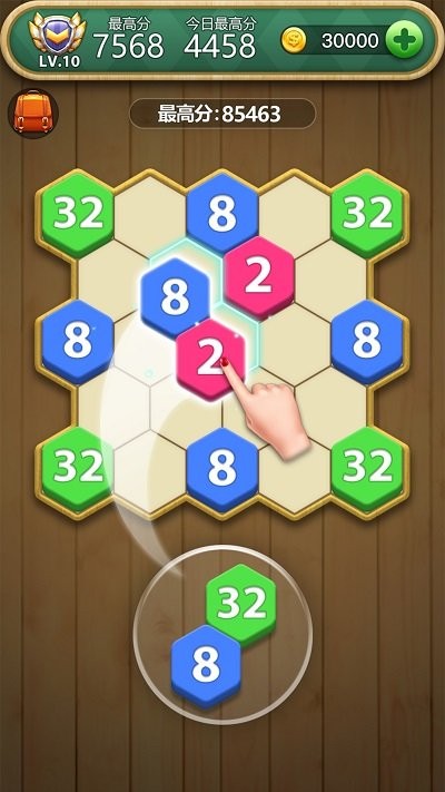 六角消除:玩家通过点击相邻的相同颜色的六角形方块进行消除,消除越多得分越高,同时还能触发连锁反应,创造更高的分数;