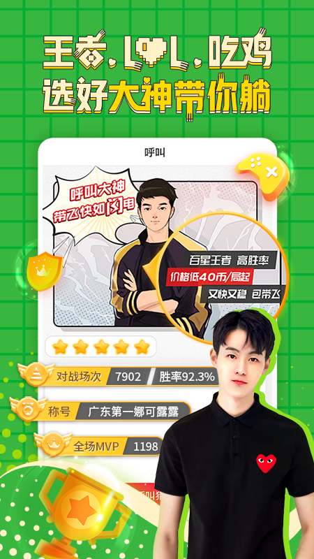 【覆盖当前热门游戏】王者荣耀、绝地求生、LOL、英雄联盟、、云顶之弈、自走棋、第五人格、穿越火线等,由经过严苛考核、实名认证的游戏大神carry,满足快速上分需求!持续更新游戏库,紧跟游戏潮流,确保玩家能体验到最新最热门的游戏陪玩服务。