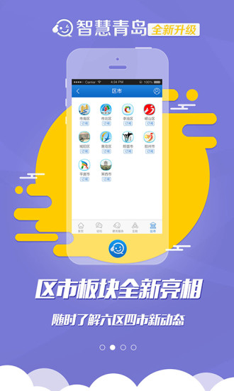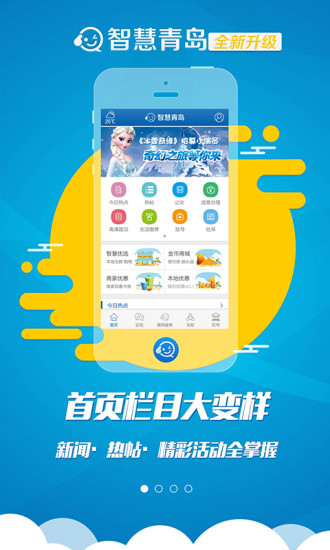 它不只是手机App,更是一个以平台化、大数据、人性化为原则设计的智慧城市民生服务平台。用户打开"智慧青岛",在首页即可看到"社区"、"挂号"、"旅游"等工具按钮,还为用户提供了智能的交通引导、影院、等十多项生活助手服务,简捷明了的界面设计让用户更容易上手操作。