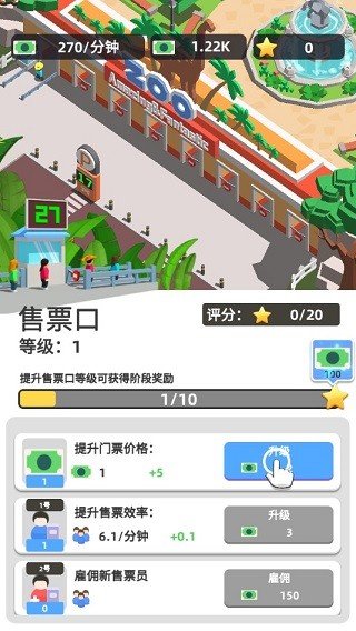 让动物园里面的动物变得更加丰富,只有这样才可以让自己的收入得到提高。游戏设计了真实的经济系统,稀有动物能吸引更多游客,带来更高门票收入。同时你还需要平衡动物饲养成本和园区维护费用,确保动物园的可持续发展。