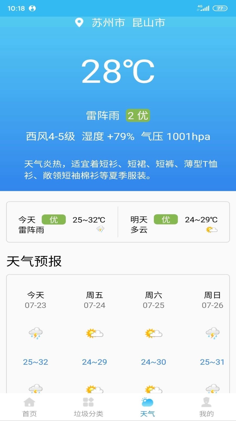 全国天气查询功能支持城市切换,可以获取任意城市的实时天气信息。垃圾分类学习板块不仅提供查询功能,还能帮助用户系统学习分类规则,培养环保意识。