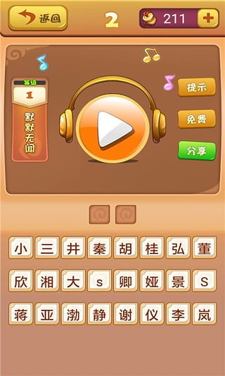 -根据一段声音片段,从若干备选字中拼出正确的明星名字,考验你的娱乐知识面!游戏采用智能语音识别技术,确保声音片段的清晰度和辨识度。