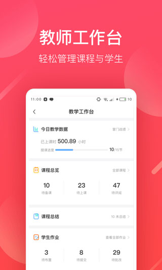 集成智能课表系统、学生成长档案、课堂记录仪等教学工具,支持多终端数据同步。特别开发批量作业批改、学情可视化分析等特色功能,大幅减少教师行政工作时间。新增教学数据看板,实时展示班级各项指标变化趋势。