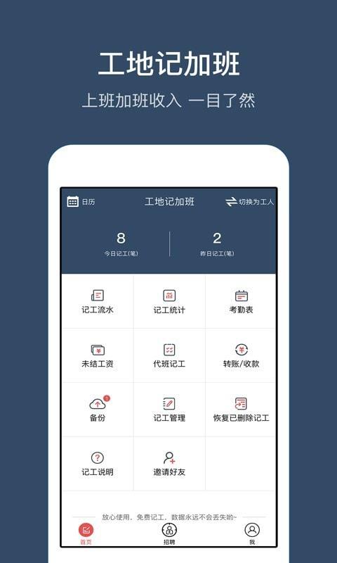 记加班是一款专注于加班记录与分析的实用工具,旨在解决职场人士加班统计繁琐、数据混乱的痛点。软件通过智能化的操作流程,让用户只需简单输入加班时间与事由,即可自动生成月度、年度加班汇总报告,并支持自定义加班费计算规则。此外,记加班提供多设备同步功能,确保数据随时随地可访问,同时采用加密存储技术保障隐私安全。无论是个人用户还是团队管理者,都能通过清晰的数据图表了解加班趋势,优化工作时间分配。记加班还支持一键导出Excel或PDF文件,方便提交报销或申请调休,是提升职场效率与透明度的得力助手。