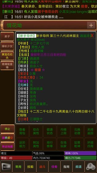 告别了传统武侠游戏的精致画面,完全没有了那种精致的游戏画面,更没有了浪漫的画面。游戏通过纯粹的文字表达,让玩家专注于剧情和角色成长,体验最本质的修仙乐趣。